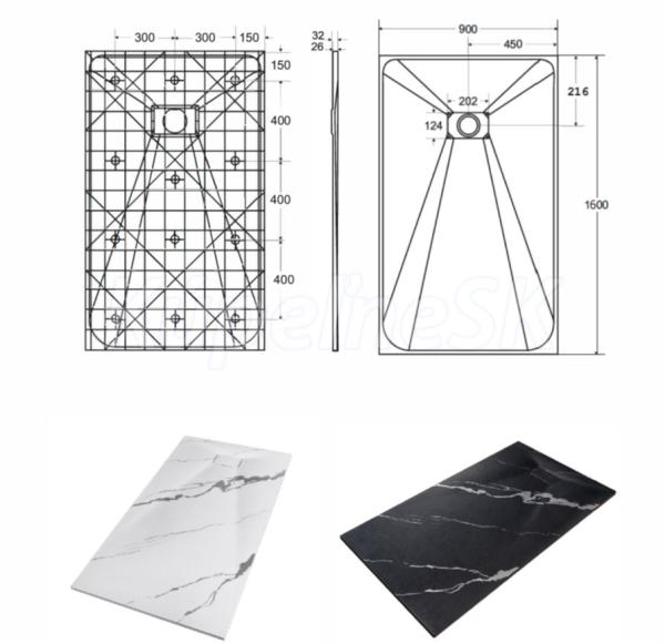 Elegantná ultratenká sprchová vanička VEXO MARBLE biela je vyrobená zo špeciálneho SMC materiálu. Dodáva sa vrátane sifónu, ale bez nožičiek. Krytka sifónu je súčasťou balenia.