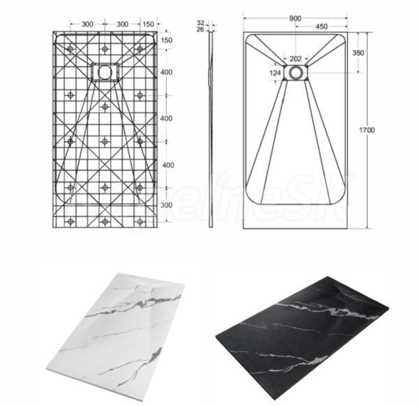 >>  Sprchové vaničky  >>  Akrylátové sprchové vaničky  >>  Rohové vaničky akrylátové  >>  BESCO Obdĺžniková sprchová vanička VEXO MARBLE 90x170x3,2 cm Biela
