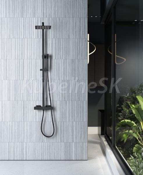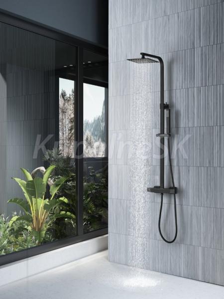 Set termostatickej batérie a hlavovej sprchy v modernom hranatom tvare: