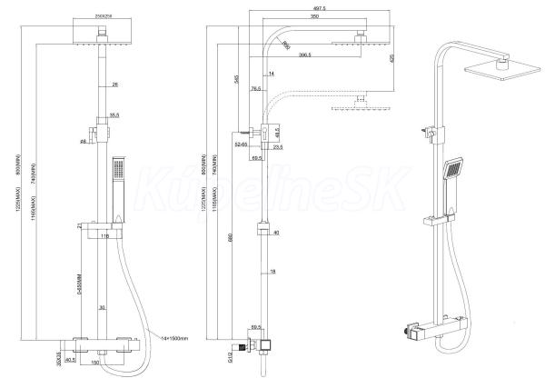 - Regulovateľná výška hlavovej sprchy 770 - 1165 mm