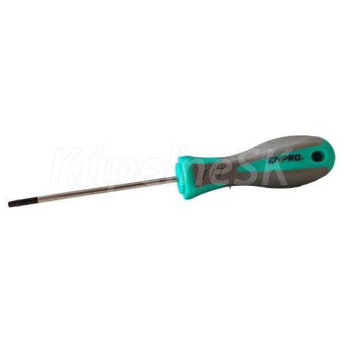 Torx skrutkovač ENPRO Kovový hriadeľ vyrobený z veľmi kvalitnej ocele S2 Kalený špička je magnetická Ergonomická dvojzložková mäkčená rukoväť z TPR gumy Otvor pre páku