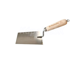Nerezová lyžica, trapézová, buková rúčka WOOD LINE dokončovacie, štukatérske práce nerezový, kyseline odolný plech hrúbky 1 mm pätibodové zváranie ergonomická rúčka z bukového dreva