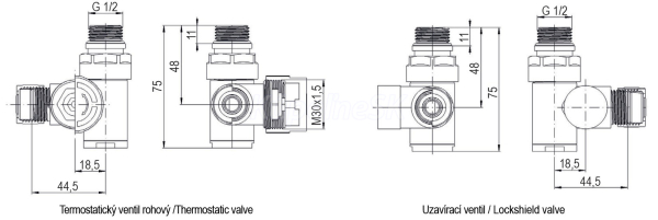 - obojstranný variant (ventil s termostatickou hlavicou môže byť vľavo aj vpravo)