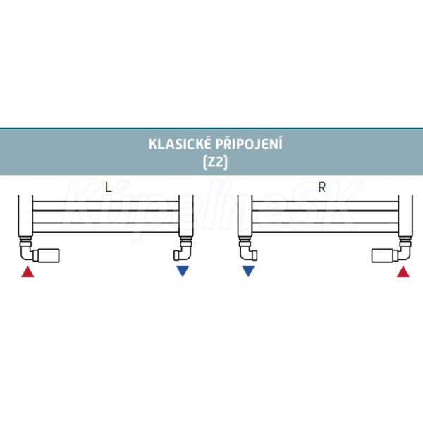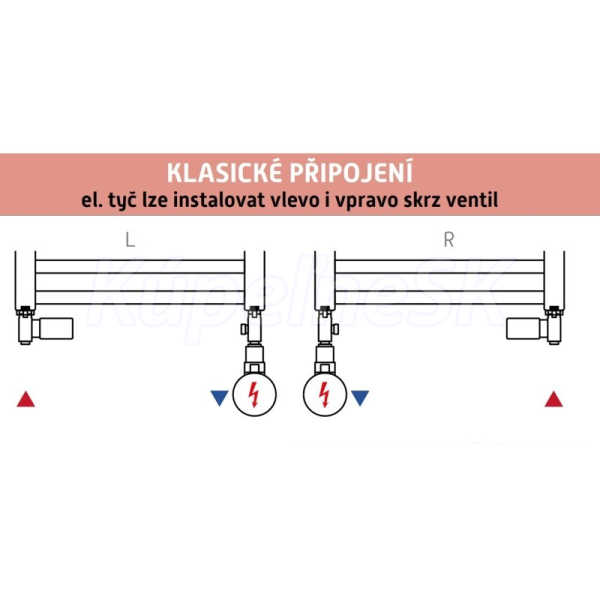 Pre kombinovanú prevádzku musíte objednať ventilovú sadu + elektrickú vykurovaciu tyč v odporúčanom výkone, ktorú môžete inštalovať cez ventil vľavo alebo vpravo do radiátora.