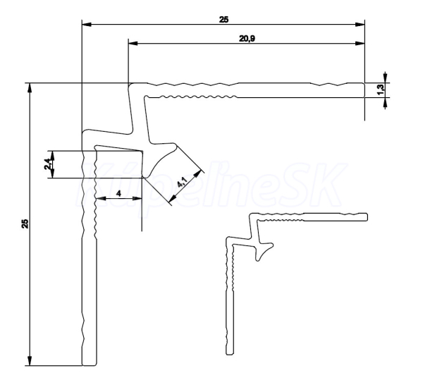 Vnútorný rohový profil , ktorý je určený na použitie s obkladovým nástenným SPC panelom a je určený pre všetky dekory týchto panelov. Pomocou tohto profilu je možné vytvoriť elegantný vnútorný roh. Profil je vyrobený z hliníka a je v striebornej farbe. Profil sa dodáva v dĺžke 270 cm .