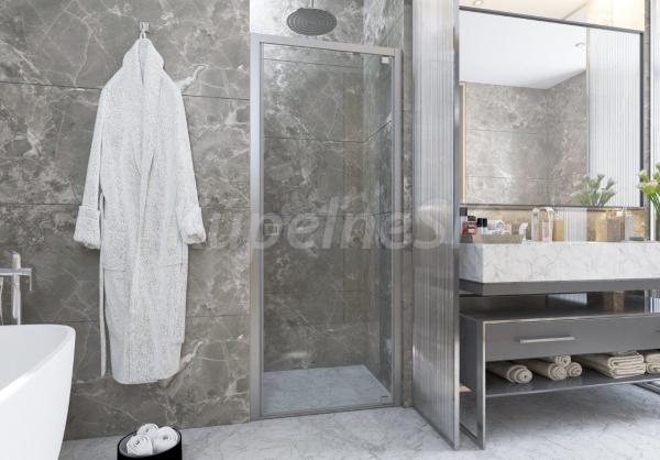 Pivotové sklenené dvere ESSENCE N1B riešia atypické vstupy v priestranných kúpeľniach. Veľmi luxusný vzhľad a dizajn je podporený profilom ktorého farbu si môžete vybrať z dvoch farebných variantov . Ďalej z kvalitného 6 mm bezpečnostného skla, ktoré si môžete vybrať z dvoch variantov a designovým madlom. Dodávajú sa v univerzálnom ľavom/pravom prevedení . Je možné dokúpiť jednu alebo dve bočné pevné steny ESSENCE F1C pomocou ktorých poskladáte praktický sprchovací kút. Pevná stena je dodávaná v univerzálnom ľavom / pravom prevedení . Výška zásten je 200 cm . Bezpečnostné sklo je možné opatriť za príplatok povrchovou úpravou AQUA CLEAN pre jednoduchšiu údržbu.