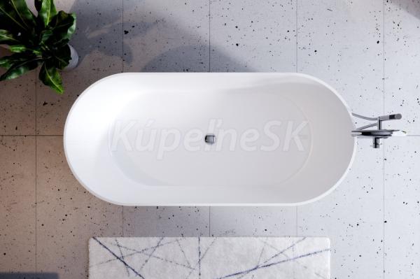BESCO Lova oválna voľne stojaca vaňa z liateho mramoru 160x75 cm Biela lesk+sifón Grafit