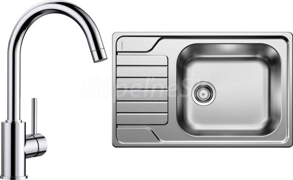 Blanco set nerezový drez 525121 DINAS XL 6 S Compact 78x50 cm a batéria 517742 MIDA chróm