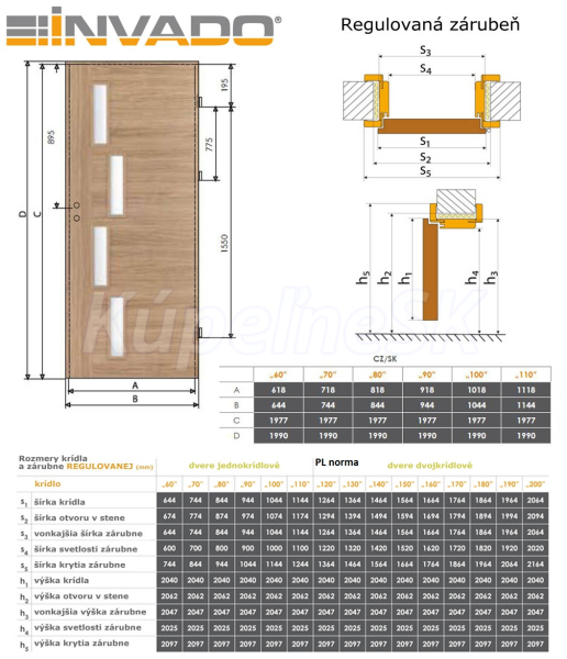 Kvalitné interiérové dvere na povrchu dýhované doskou HDF s dekoračnou jednosmernou fóliou Céder forte. Všetky dvere Invado sú dýhované unikátnou technológiou, kedy sa dýha zakladá na spojovacej hrane falcu, vďaka čomu nie je povrch dverí ničím narúšaný, pôsobí ucelene a esteticky. Rám je z pevnej dosky MDF. Dvere sú osadené bielymi pozinkovanými závesmi (3ks pri 90cm dverách, 2ks pri ostatných). Zámok dverí je možné si zvoliť ako bežný medziizbový zámok, ako WC zámok alebo ako dozický zámok. Celková výška dvera je možné ich skrátiť o max. 50mm. Dvere sú osadené matným sklom.