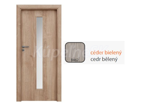 Kvalitné interiérové dvere na povrchu dýhované doskou HDF s dekoračnou jednosmernou fóliou Céder forte. Všetky dvere Invado sú dýhované unikátnou technológiou, kedy sa dýha zakladá na spojovacej hrane falcu, vďaka čomu nie je povrch dverí ničím narúšaný, pôsobí ucelene a esteticky. Rám je z pevnej dosky MDF. Dvere sú osadené bielymi pozinkovanými závesmi (3ks pri 90cm dverách, 2ks pri ostatných). Zámok dverí je možné si zvoliť ako bežný medziizbový zámok, ako WC zámok alebo ako dozický zámok. Celková výška dver je možné ich skrátiť o max. 50mm. Dvere sú osadené matným sklom.