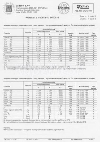 Výroba: Studničné rúry sú vyrábané zo zmesi PVC, ktorá má hygienický atest pre dopravu pitnej vody.