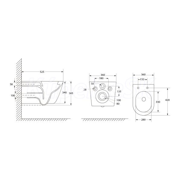 >> WC-Bidety-dosky-Pisoár >> WC závesné >> Aqualine DENICA závesná WC misa, Vortex Rimless, 36x52cm, biela