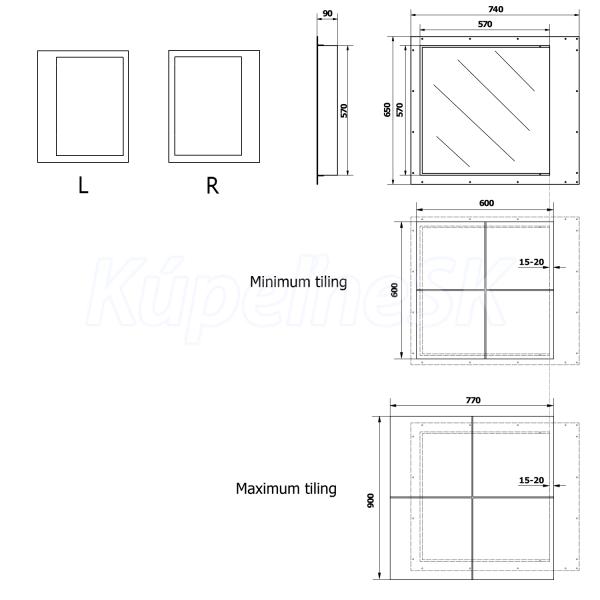 Sapho ZARZ revízne dvierka pod obklady 60x60cm, otváranie click-clack, podporné kolieska Z