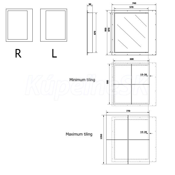 Sapho ZARZ revízne dvierka pod obklady 60x90cm, otváranie click-clack, podporné kolieska Z