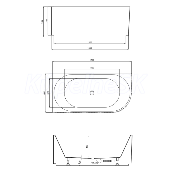 Súčasťou vane je prepadová súprava, výpusť s click-clack zátkou a sifón