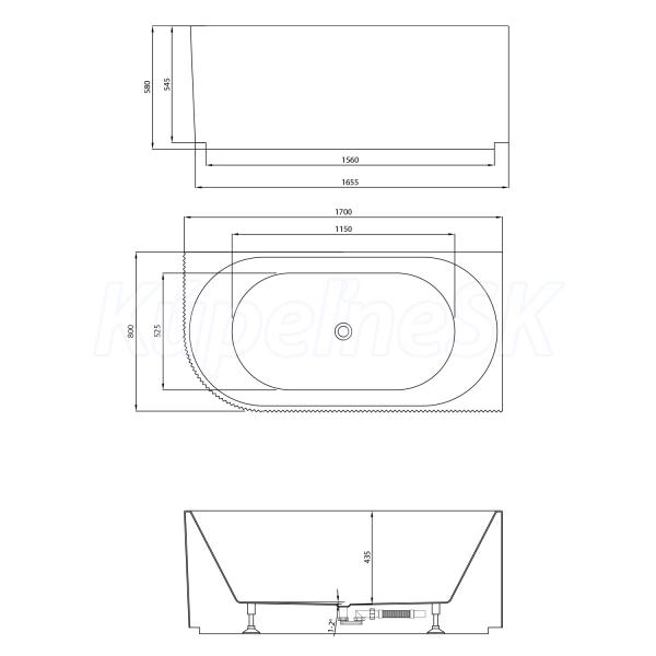 >>  Vane + príslušenstvo  >>  Akrylátové-Rohové vane  >>  Aqualine TIBERA STRIP R akrylátová rohová stojaca vaňa, 170x80 cm, biela E1015G