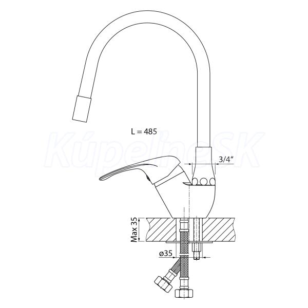 Aqualine KASIOPEA 35 stojánkova drezová batéria, flexibilné ramienko, chróm/čierna mat 110