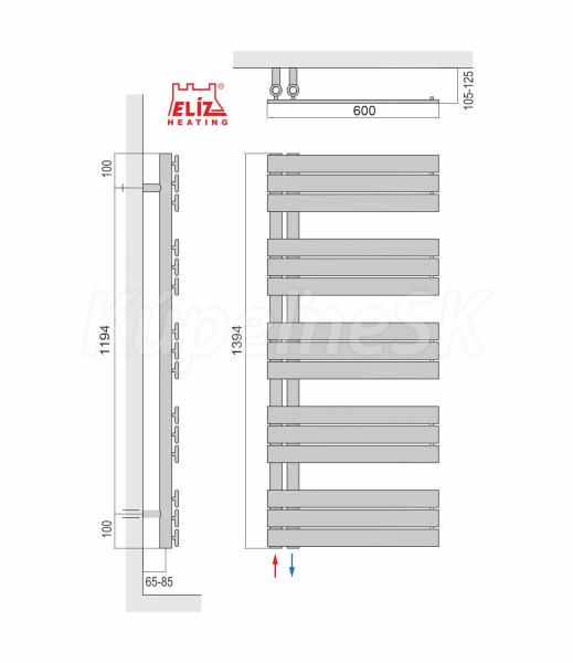 ELÍZ EBR 800 AG-B Elektrický radiátor, príkon 800 W, čierna matná farba, zabudovaná ohrievacia tyč, elektronické ovládanie teploty, krytie IP44, LED displej, časovač, automatické vypnutie pri prehriatí. SYMETRICKÝ DIZAJN – Elektrický radiátor ELÍZ, model EBR 800 AG-B Jeho nádherný symetrický dizajn plochých lamiel dodá vašim obytným priestorom moderný vzhľad.Model EBR 800 AG-B je priekopníkom symetrického dizajnu, ktorý ponúka jednoduché používanie, jednoduché čistenie a možnosť používať ho bez potreby akéhokoľvek ďalšieho príslušenstva. Elektrický radiátor EBR je tradičné riešenie pre vykurovanie a sušenie uterákov, ktoré je nezávislé od prívodu vody z centrálneho vykurovania. Koncepcia dizajnu BLACK & WHITE. Model EBR 800 AG ponúkame vo farbe: EBR 800 AG-W - biela lesklá, alebo EBR AG-B - čierna matná. Elektrický radiátor EBR 800 AG-B poskytne komfortný zdroj tepla pre vašu kúpeľňu a zaujme moderným dizajnom. Výkon elektrického telesa 800 W pohodlne vyhreje kúpeľňu do 10 m2 a viete ho využit aj ako praktický sušiak uterákov. Radiátor je vybavený dotykovým ovládacím panelom s LED displejom. Splňa normy na energetickú účinnosť ohrevu. Pomocou dotykového ovládania viete jednoducho nastaviť požadovanú teplotu a časovač. Nastavenie teploty sa vykonáva v rozsahu 5-30 °C. Radiátory série EBR sú dodávané so zabudovanou ohrievacou tyčou a naplnené nemrznúcou zmesou do -5°C. Súčasťou výrobku je taktiež prívodný napájací kábel s koncovkou na 230V. Radiátor je v rámci bezpečnosti vybavený automatickou ochranou proti prehriatiu. Výrobok je určený pre inštálaciu na stenu (držiaky na uchytenie na stenu sú súčasťou balenia).Pri prerušení a obnovení elektrického napájania sa zariadenie vypne a ostane v režime OFF (vypnuté). Vlastnosti: Výkon: 800 W Čierna matná farba Moderný dizajn plochých lamiel Krytie IP 44 - bezpečné použitie v kúpeľni Dotykový ovládací panel s LED displejom Presný elektronický termostat Nastavenie teploty 5 - 30 °C Časovač Protimrazová ochrana +7 °C Bezpečnostná poistka proti prehriatiu Jednoduché ovládanie Bezhlučná prevádzka Napájací kábel s koncovkou na 230V: 1,2 m