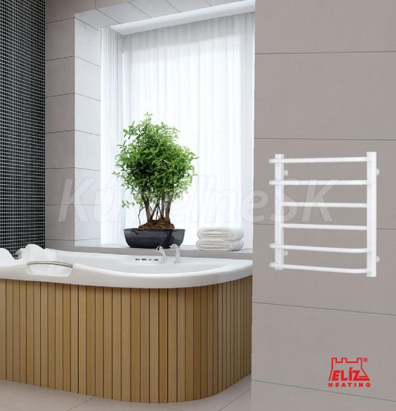 ELÍZ EBS 6/55 AF-W Vykurovanie | Infrapanely, kúpeľňové radiátory a sušiaky Elektrický sušiak, príkon 109 W, biela lesklá farba, zabudovaný ohrievací vodič, mechanické ovládanie teploty, krytie IP44, automatické vypnutie pri prehriatí. Elektrický sušiak ELÍZ, model EBS 6/55 AF-W