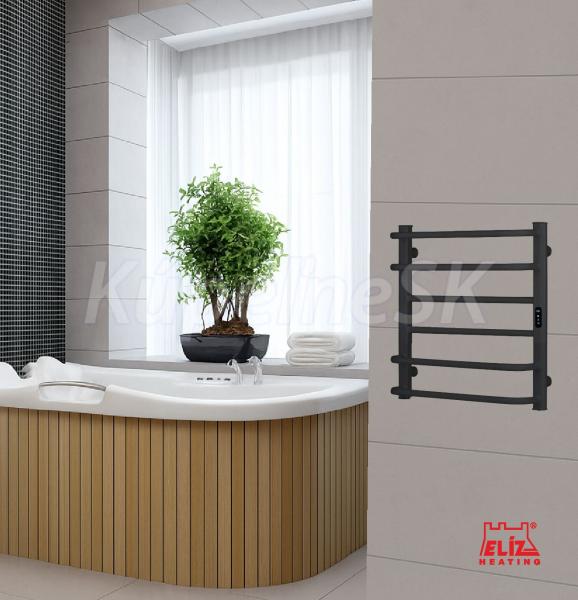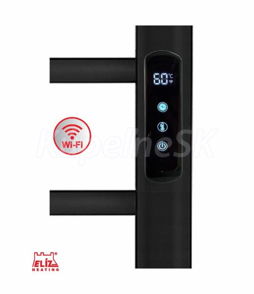 ELÍZ EBS 6/55 AF-B WIFI Vykurovanie | Infrapanely, kúpeľňové radiátory a sušiaky Elektrický sušiak, príkon 109 W, čierna matná farba, zabudovaný ohrievací vodič, elektronické ovládanie teploty s funkciou WIFI, časovač zaponutia/vypnutia, krytie IP44, automatické vypnutie pri prehriatí. Elektrický sušiak ELÍZ, model EBS 6/55 AF-B WIFI
