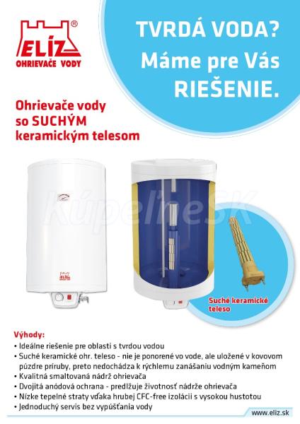 ELÍZ EURO 201 Elektrický zvislý ohrievač vody, objem 200 l., suché keramické teleso, nastaviteľný termostat s ECO, smaltovaná oceľová nádrž, anódová ochrana, energetická trieda C. Elektrický tlakový ohrievač vody EURO 201 so suchým keramickým ohrievacím telesom je ideálnym riešením pre oblasti s tvrdou vodou. Suché keramické ohrievacie teleso nie je ponorené vo vode, ale uložené v kovovom púzdre príruby, preto nedochádza k rýchlemu zanášaniu telesa vodným kameňom. Je vhodný pre jedno alebo viac odberných miest a určený pre zvislú nástennú montáž. Nádrž ohrievača vody je vyrobená z kvalitnej ocele chránená vrstvou zirkónového smaltu. Kvalitná polyuretánová izolácia bez CFC hrúbky 43 mm zaručuje nízke tepelné straty a úsporu nákladov na ohrev vody. Pomocou termostatu umiestnenom na ovládacom paneli viete nastaviť teplotu vody v rozsahu 7 - 75°C, s možnosťou nastavenia režimu ECO. Pri nastevní v režime ECO sa voda ohreje na optimálnu teplotu 55°C, so zníženými tepelnými stratami a nižšou spotrebou elektrickej energie. Minimálna hodnota termostatu slúži ako ochrana proti zamrznutiu vody v ohrievači. Ohrievač má zabudované dve anódové tyče, ktoré garantujú efektívnu ochranu nádrže proti korózii a výrazne predlžujú jej životnosť. Vypínač so svetelnou kontrolkou ohrevu slúži k zapnutiu / vypnutiu ohrievača v prípade našej neprítomnosti, čo umožňuje úsporu energie. Hlavné výhody a vlastnosti: Ideálne riešenie pre oblasti s tvrdou vodou Suché keramické ohrievacie teleso Rýchly ohrev vody Energetická trieda C Jednoduchý servis bez vypúšťania vody Kvalitná oceľová nádrž s vrstvou zirkónového smaltu Bezfreónová polyuretánová izolácia s vysokou hustotou, hrúbka 43 mm Nízke tepelné straty a nízke prevádzkové náklady vďaka hrubej izolácii Bezpečnosť - unikátna 6-stupňová ochrana Dvojitá anódovú ochrana - 2 horčíkové anódy Termostat umiestnený na ovládacom paneli s rozsahom 7-75 °C Nastavenie režimu ECO Tepelná poistka proti prehriatiu Indikátor teploty Vodeodolný vypínač so svetelnou kontrolkou ohrevu Protimrazová ochrana Závesná konzola a kovový poistný ventil so spätnou klapkou súčasťou ohrievača Predĺžená záruka 5 rokov na nádrž ohrievača