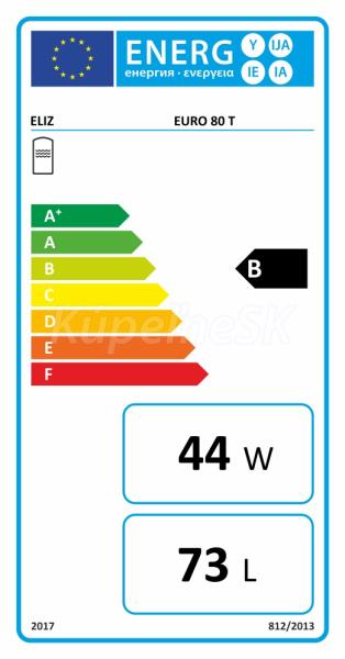 ELÍZ EURO 80 T Zásobníkové ohrievače | Kombinované zvislé Kombinovaný zvislý ohrievač vody, objem 80 l., elektrická špirála a 1 vykurovací had. Energetická trieda B, nastaviteľný termostat s ECO, smaltovaná oceľová nádrž, anódová ochrana. Kombinovaný tlakový ohrievač vody ELÍZ EURO 80 T s objemom 80 litrov je vhodný pre jedno alebo viac odberných miest. Určený je pre zvislú nástennú montáž. Obsahuje elektrické ohrievacie teleso a vykurovací výmenník s možnosťou napojenia na externý teplovodný zdroj, napr. kotol ÚK. Vývody kúrenia sú z ľavej strany a vývody vody zdola. Ohrievač má tiež dva otvory pre pripojenie komunikačných čidiel.