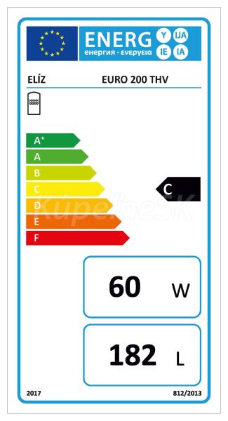 ELÍZ EURO 200 THV Zásobníkové ohrievače | Stacionárne nepriamoohrevné, horné vývody Stacionárny nepriamoohrevný ohrievač vody, objem 200 l., 1 vykurovací výmenník, horné vývody, pripojenie pod kotol ÚK, energetická trieda C. Stacionárny (na zemi stojaci) nepriamoohrevný ohrievač vody ELÍZ EURO 200 THV s výkonným výmenníkom a hornými vývodmi je ideálnym riešením pre napojenie pod závesný kotol ÚK. Ohrievač má všetky vývody orientované smerom nahor pre jednoduchšie napojenie kotla ÚK, s možnosťou napojenia cirkulácie z bočnej strany. Súčasťou ohrievača je otvor pre jimku pre pripojenie čidla termostatu, otvor pre pripojenie komunikačného čidla, výpustný ventil. V spodnej časti je predpripravený otvor G1 1/4" F pre prídavné elektrické teleso (nie je súčasťou ohrievača). Ohrievač je vhodný pre jedno alebo viac odberných miest.