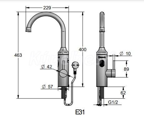 ELÍZ E 31 Prietokové ohrievače | Batéria s elektrickým ohrevom Vodovodná batéria s elektrickým ohrevom 3,3 kW, chromové kovové ramienko otočné o 360°. Stojanková vodovodná batéria E 31 s elektrickým ohrevom 3,3 kW je vhodná pre inštaláciu na umývadlo alebo drez v domácnosti, kancelárií, chate, garáži a podobne. Model E 31 spája funkciu ohrievača vody a vodovodnej batérie do jedného celku. Je vhodná na zapojenie do elektrickej zásuvky nad aj pod umývadlo alebo kuchynskú linku bez toho, aby ste museli riešiť nové otvory pre elektrinu.