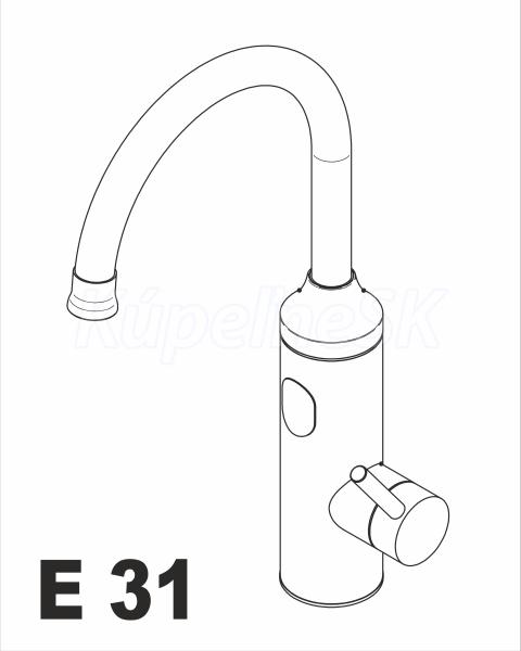 ELÍZ E 31 Vodovodná batéria s elektrickým ohrevom 3,3 kW, chromové kovové ramienko otočné o 360°. Stojanková vodovodná batéria E 31 s elektrickým ohrevom 3,3 kW je vhodná pre inštaláciu na umývadlo alebo drez v domácnosti, kancelárií, chate, garáži a podobne. Model E 31 spája funkciu ohrievača vody a vodovodnej batérie do jedného celku. Je vhodná na zapojenie do elektrickej zásuvky nad aj pod umývadlo alebo kuchynskú linku bez toho, aby ste museli riešiť nové otvory pre elektrinu. Výtokové ramienko 360° - pododlné riešenie s otočným kovovým ramienkom 360°. Jednoduché ovládanie a montáž - ovládanie pákou batérie a montáž na prívod vody. LED displej - orientačná teplota zohriatej vody. Odnímateľná zástrčka - jednoduché pripojenie k el.zásuvke nad alebo pod umývadlo alebo drez. Tepelná poistka - chráni ohrievač proti prepáleniu. Aktívny perlátor - mení prietok vody pre lepší ohrev. Nekonečná teplá voda - okamžitý ohrev zaisťuje stabilný a nepretržitý prietok teplej vody. Vysokokvalitné materiály - telo batérie je vyrobené z kvalitnej nehrdzavejúcej ocele. Bezpečnosť - zhoda so všetkými európskymi normami a požiadavkami na bezpečnosť a účinnosť. Ekonomika - ohrev vody pri prechode vody má minimálne tepelné straty a šetrí energiu. Pripájací flexi elektrický kábel - dĺžka 95 cm.
