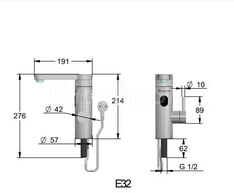 ELÍZ E 32 Vodovodná batéria s elektrickým ohrevom 3,3 kW, ploché plastové ramienko otočné o 360°. Stojanková vodovodná batéria E 32 s elektrickým ohrevom 3,3 kW je vhodná pre inštaláciu na umývadlo alebo drez v domácnosti, kancelárií, chate, garáži a podobne. Model E 32 spája funkciu ohrievača vody a vodovodnej batérie do jedného celku. Je vhodná na zapojenie do elektrickej zásuvky nad aj pod umývadlo alebo kuchynskú linku bez toho, aby ste museli riešiť nové otvory pre elektrinu.   Výtokové ramienko 360° - pododlné riešenie s otočným plastovým ramienkom 360°. Jednoduché ovládanie a montáž - ovládanie pákou batérie a montáž na prívod vody. LED displej - orientačná teplota zohriatej vody. Odnímateľná zástrčka - jednoduché pripojenie k el.zásuvke nad alebo pod umývadlo alebo drez. Tepelná poistka - chráni ohrievač proti prepáleniu. Aktívny perlátor - mení prietok vody pre lepší ohrev. Nekonečná teplá voda - okamžitý ohrev zaisťuje stabilný a nepretržitý prietok teplej vody. Vysokokvalitné materiály - telo batérie je vyrobené z kvalitnej nehrdzavejúcej ocele. Bezpečnosť - zhoda so všetkými európskymi normami a požiadavkami na bezpečnosť a účinnosť. Ekonomika - ohrev vody pri prechode vody má minimálne tepelné straty a šetrí energiu. Pripájací flexi elektrický kábel - dĺžka 95 cm.