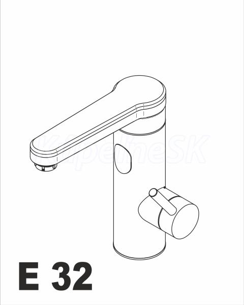 ELÍZ E 32 Prietokové ohrievače | Batéria s elektrickým ohrevom Vodovodná batéria s elektrickým ohrevom 3,3 kW, ploché plastové ramienko otočné o 360°. Stojanková vodovodná batéria E 32 s elektrickým ohrevom 3,3 kW je vhodná pre inštaláciu na umývadlo alebo drez v domácnosti, kancelárií, chate, garáži a podobne. Model E 32 spája funkciu ohrievača vody a vodovodnej batérie do jedného celku. Je vhodná na zapojenie do elektrickej zásuvky nad aj pod umývadlo alebo kuchynskú linku bez toho, aby ste museli riešiť nové otvory pre elektrinu.