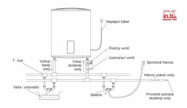 Súčasťou balenia ohrievača sú závesné konzoly na stenu, kovový poistný ventil so spätnou klapkou, napájací kábel a skrutky na uchytenie ohrievača.