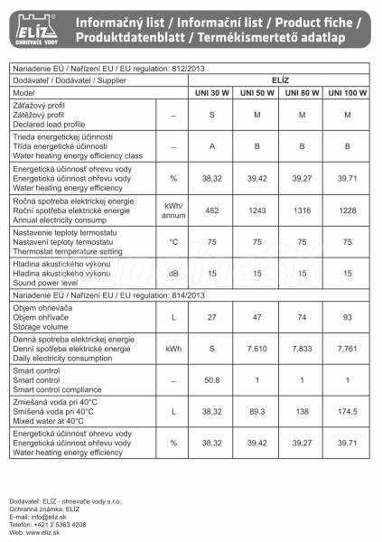 ELÍZ UNI 50 W Elektrický plochý ohrievač vody s WIFI, univerzálna montáž, objem 47 lit., 2