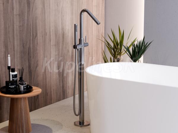Stojanková batéria do podlahy vyzerá skvele v kombinácii s voľne stojacou vaňou.
