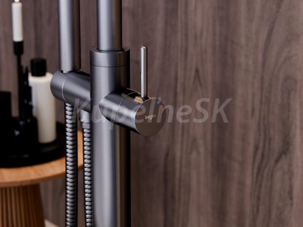 Vysoká vaňová batéria VEO III GRAFIT (farba grafit) s výškou 1102 mm od európskeho dodávateľa vodovodných batérií BESCO . Batéria je určená na inštaláciu do podlahy (vrátane inštalačného boxu pre jednoduchšiu inštaláciu) a oceníte ju najmä ak máte voľne stojacu vaňu. Dodávané vrátane príslušenstva - sprchová hlavica s hadicou. Stojanková vaňová batéria pre moderné kúpeľne. Dodávame v piatich farbách a to chróm, čierna , grafitová, zlatá lesklá alebo zlatá brúsená.