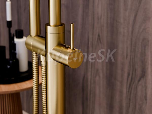 Vysoká vaňová batéria VEO III v zlatej brúsenej farbe s výškou 1102 mm od európskeho dodávateľa vodovodných batérií BESCO . Batéria je určená na inštaláciu do podlahy (vrátane inštalačného boxu pre jednoduchšiu inštaláciu) a oceníte ju najmä ak máte voľne stojacu vaňu. Dodávané vrátane príslušenstva - sprchová hlavica s hadicou. Stojanková vaňová batéria pre moderné kúpeľne. Dodávame v piatich farbách a to chróm, čierna , grafitová, zlatá lesklá alebo zlatá brúsená.