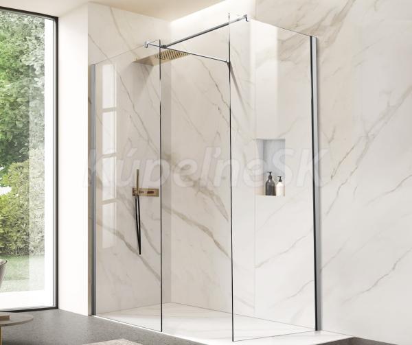 Walk-in sprchová zástena LAGOS NEW s rámom a rozpernou tyčou v štyroch farbách (chróm, čierna, zlatá a grafitová) , ponúka jednoduché a pritom praktické riešenie bez použitia pohyblivých dverí, ale s maximálnym vstupom. Dá sa osadiť ako na sprchové vaničky, tak aj priamo na podlahu.