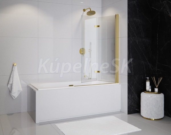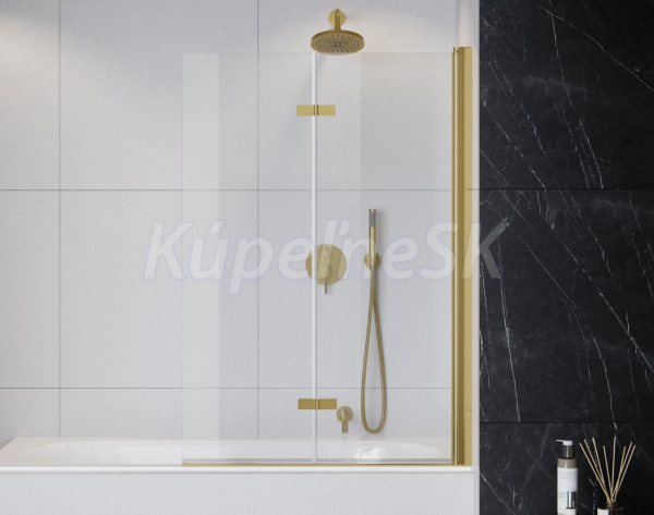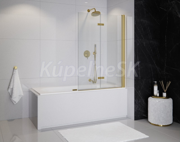 BESCO LUMIX GOLD 2-dielna zalamovacia vaňová zástena 100x145 cm sklo Číre profil Zlatý
