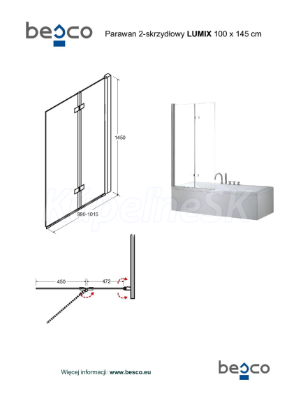 - Rozmery: 100 × 145 cm, montážny rozmer 99 - 101,5 cm