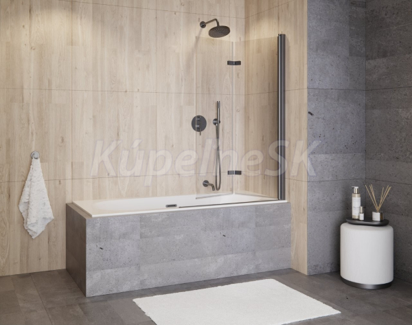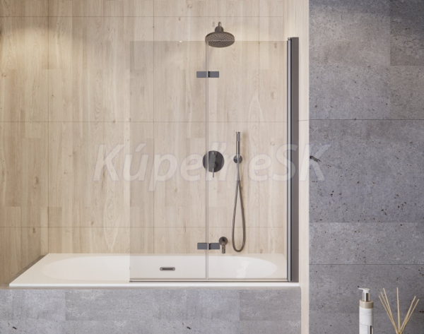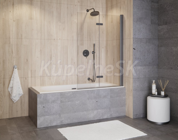 BESCO LUMIX GRAFIT 2-dielna zalamovacia vaňová zástena 100x145 cm sklo Číre profil Grafit