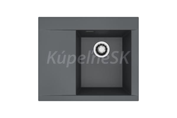 Alveus PURE-G 50 granitový drez 615x515x198mm,odkladacia plocha,Čierna A91 + sifón QC Prav
