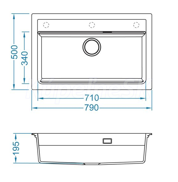 Rozmer balenia (mm): 904x598x263 Vestavěný dřez, univerzál.