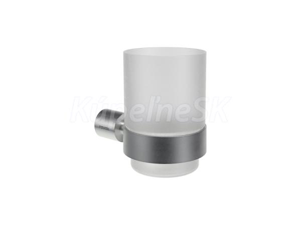 Nástenný držiak s pohárom Fold. V prevedení kefovaná nerez a matné sklo.