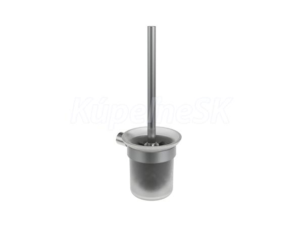 Nástenný držiak s WC štetkou a nádobkou Fold. V prevedení kefovaná nerez a matné sklo.