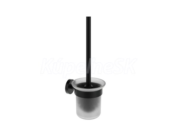 Nástenný držiak s WC kefou a nádobkou Kona. V čiernom matnom prevedení s matným sklom.