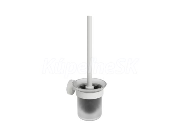 Nástenný držiak s WC kefou a nádobkou Kona. V bielom matnom prevedení s matným sklom.