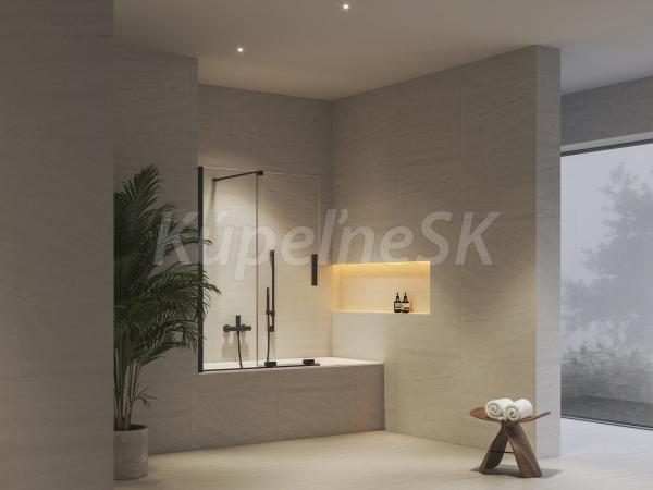 Dvojdielna posuvná vaňová zástena na obdĺžnikové vane. V čiernom prevedení as výplňou z číreho skla s ochrannou vrstvou Ravak AntiCalc. Otočiteľný výrobok pre ľavý aj pravý variant.