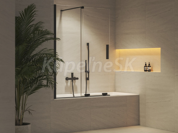 Dvojdielna posuvná vaňová zástena na obdĺžnikové vane. V čiernom prevedení as výplňou z číreho skla s ochrannou vrstvou Ravak AntiCalc. Otočiteľný výrobok pre ľavý aj pravý variant.