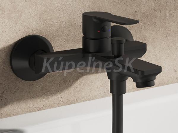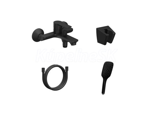 Nástěnná vanová baterie Solar se sprchovým setem. V černém matném provedení.