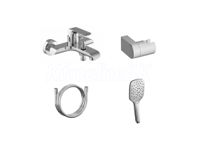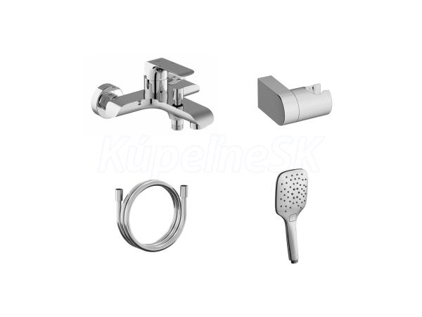 Nástenná vaňová batéria Flat so sprchovým setom. V chrómovom vyhotovení.